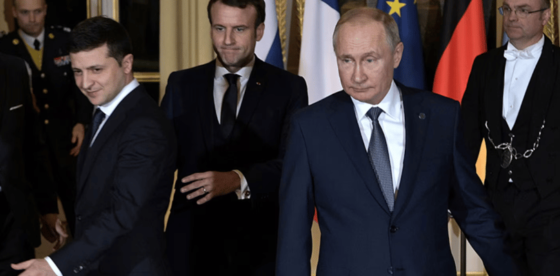 Volodímir Zelenski y el ruso Vladímir Putin en una cumbre en el Eliseo (EFE)